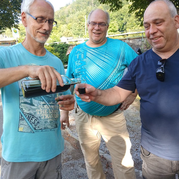 18 Teilnehmerinnen und Teilnehmer hatte die vorletzte Radtour in die Abendsonne unter der Devise "Summer fun in the sun". Mitglieder wie auch Nichtmitglieder hatten abermals eine gute Gemeinschaft und machten erstmals Station in "Hottes Stadel", direkt am Kurpark der Kreis- und Kurstadt Bad Ems. Die Radler wurden nach einer Tour durch etliche Pfützen auf dem Lahntalradweg mit bayerischer Küche gut bewirtet und fühlten sich wohl. Ein Novum waren gleich zwei "Absacker". Zum einen in Bad Ems bei Jürgen am Rande des Emsbachs an einem Radweg, über welchen einst eine Lorenbahn fuhr und zum anderen in Oberlahnstein an der Lahn im Gärtchen von Ulrike, wo sich einst die "Lahngrotte" befand. Hier waren internationale Gäste dazugestossen. Die letzte Fahrt wird am Dienstag, 12. August 2025 "rund um Lahnstein" führen und den Abschluß im Winzerhaus in der Burgstraße machen. Treffpunkt - auch für interessierte Nichtmitglieder - ist wieder um 17,30 Uhr am "Baareschesser"-Denkmal auf dem Festplatz im Stadtteil Niederlahnstein, direkt an der Lahn.