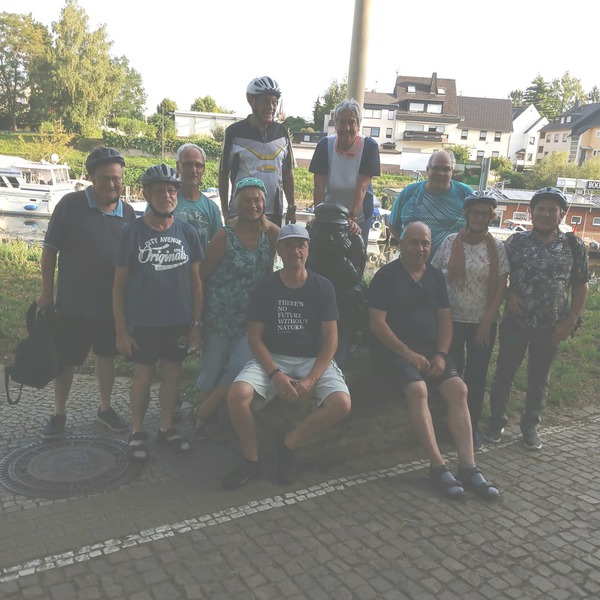Die sommerlichen Fahrradtouren während der Sommerferien gehen weiter. Am 29. Juli 2025 war wohl der "harte Kern" unterwegs, denn es sah nach Regen aus, bewahrheitete sich jedoch nicht. Blicke auf den Handy-Regenradar und Wetterberichte blieben nicht aus (gab es früher alles nicht). Schließlich bekamen die Radler nur wenige Tropfen ab und kehrten im "Goldenen Schlüssel", einem gut laufenden Restaurant in Braubach ein. Die Wein- und Rosenstadt war auch schon in den vergangenen Jahren Ziel des dienstäglichen "Biergartenhoppings". War bei der ersten Tour übrigens Hiltrud Kron Gastgeberin für den "Absacker", so stellte diesmal Claudia Hatterscheid kurzerhand die Mülltonnen raus für den "Absacker" nach getaner Muskelkraft. Weiter geht es am Dienstag, 5. August 2025 um 17,30 Uhr ab Festplatz Niederlahnstein an der Lahn. Ziel ist ein Freiluftlokal in der Kreis- und Kurstadt Bad Ems. Es geht also über den Lahntal-Radweg. Am Dienstag, 12. August ist dann die Gaststätte "Winzerhaus" in Oberlahnstein, Burgstraße, das Ziel der Abschlußtour für 2025. Herzliche Einladung zur Teilnahme auf eigene Gefahr auch an Nichtmitglieder.