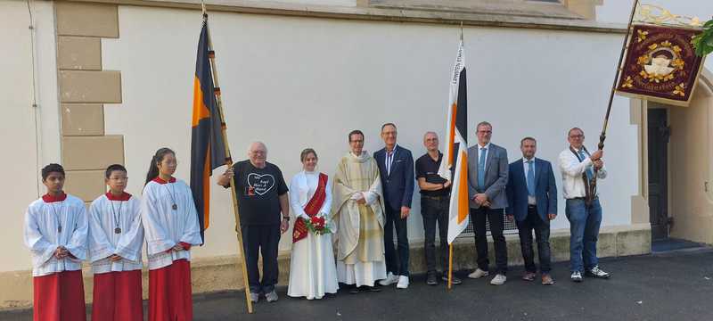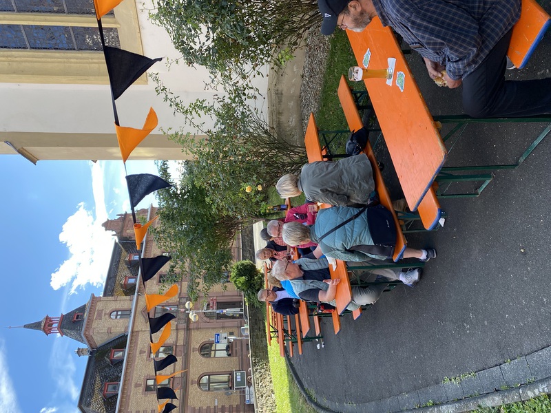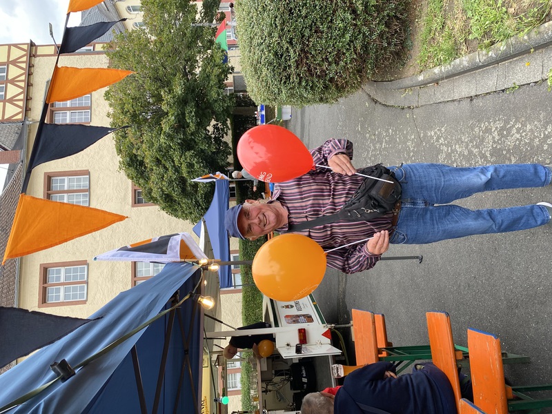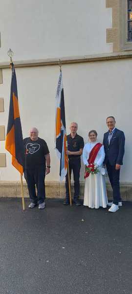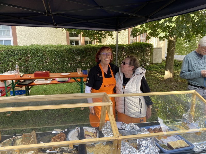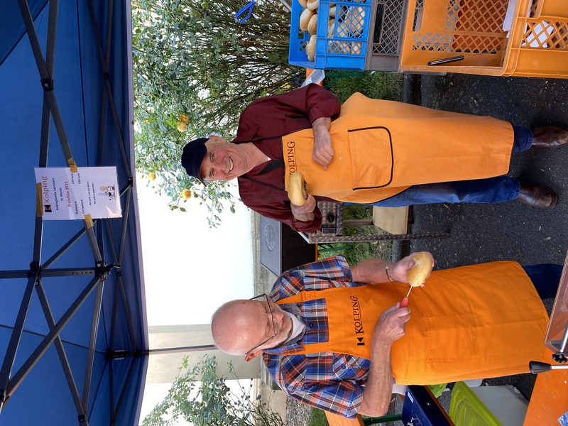 Im Schatten des Kirchturmes der St. Martinskirche Oberlahnstein feierte die Kolpingfamilie St. Martin mit vielen Gästen aus nah und fern, mit Jung und Alt, das Kirchweihfest 2025. Das vielzitierte Aprilwetter offenbarte sich an jenem zweiten Septemberwochenende. Immer wieder schoben sich dunkle Wolken unter den sonnengefluteten, blauen Himmel und es schauerte so einige Male. So mancher, der gerade die Haustür im Anschlag hatte, zog es bei diesen Wetterkapriolen vor, das heimische Sofa nicht zu verlassen. Rund 20 Kolping-Mitglieder leisteten ihre Dienste bei der Bratwurst-Braterei und im Getränkestand, wo es neben den üblichen antialkoholischen Getränken sowohl Kölsch wie auch Pils gab. Sie verwirklichten einmal mehr den Ausspruch "Zusammen sind wir Kolping". Am Samstagabend waren wieder beliebte Stammgäste mit von der Partie. 17 verschiedene, selbstgebackene, wohlschmeckende Kuchen sorgten am Sonntagnachmittag für ein buntes, abwechslungsreiches Kuchenbüffett. Vom Streuselkuchen über den Mohn- und Zauberkuchen bis zu den Nussecken und Windbeuteltorte. Schokoladenkuchen, Marmorkuchen und und und... Die Kolping-Verantwortlichen sprachen ihren Dank den Hobby-Konditorinnen und Konditoren aus der Pfarrei und der Kolpingfamilie für viel Kreativität und Liebesmühe rund um den Herd aus. „Ausverkauft“ hieß es sonntags um 17 Uhr am Bratwurst-Stand. Offensichtlich schmeckte es. Einige Flohmarktstände warben um Kundschaft. An den Brauereigarnituren hatte man sich viel zu erzählen: Seltene Kirmesgäste, Nachbarn, Bekannte, Vereinsangehörige und Verwandte sprachen über Kolping und Gott und die Welt. Die Kirmes im Spätsommer ist immer noch ein besonderer Fixpunkt im Jahreslauf und im Jahreskalender von so manchem Zeitgenossen. Schön, daß auch viele unserer älteren Mitglieder zu Gast waren. Sowohl im Festhochamt unter Leitung unseres Präses, Pfarrer Armin Sturm, wie auch beim Kirmesumzug durch Hintermauergasse und Frühmesserstraße wehten die schwarz-orangefarbenen Kolping-Banner.
