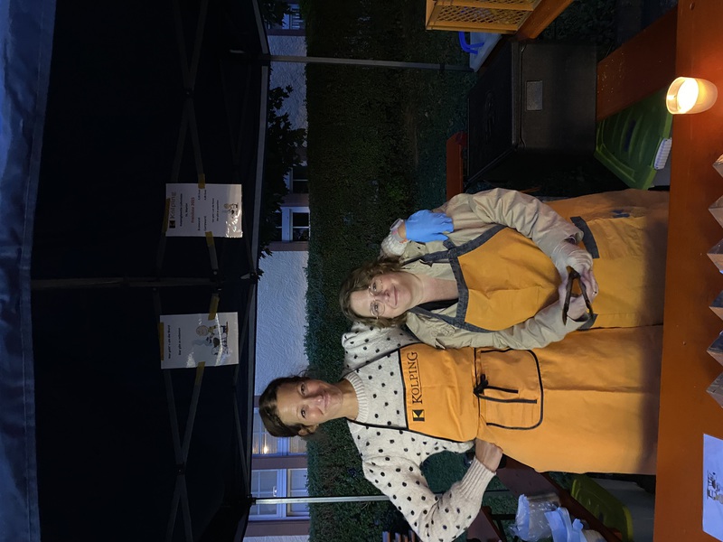 Manchman sind die sogenannten "Sponti-Veranstaltungen" die schönsten. Mit rund 20 Personen hatte man gerechnet, doch schliesslich konnte die Kolpingfamilie St. Martin an die 70 Personen begrüßen bei "Weck, Worscht un Woi" rund um die Wenzelkapelle in der Max-Schwarz-Straße in Oberlahnstein am Rheinquartier und Victoria-Brunnen. Mangels ausreichender Sitzplätze fanden sich manche Gäste auf umgedrehten, leeren Wasserkästen wieder. Alle Hände voll zu tun hatten die Vorständler Kurt Biegel, Claudia Hatterscheid, Klaus-Michael Kauers und Peter Stein beim Bratwurst-Grillen. Es gab badischen Landwein, Cola, Limo, Wasser und Stubbis und dies alles zu äußerst zivilen Preisen. Auch ein Pfingstfeuer wurde entflammt, dies erinnerte an manches Lagerfeuer bei Pfingstzeltlagern. Außerdem brannten drei Schwedenfeuer. Mit dem Wetter hatte man Glück. Just als die Pavillons errichtet wurden, verzogen sich die dunklen Regenwolken und so gab es noch das Erlebnis von schöner Abendsonne. Vielleicht hatte auch hier der "Heilige Geist" seine Hände im Spiel. Tauben waren jedenfalls nicht zu sehen. Sogar Mitglieder der Kolpingjugend und Sebastian Sellinat aus Wiesbaden und Mitglied der Kolpingfamilie Hochheim waren vertreten. Auch Claudia Hümmerich vom Vorstandsteam der Nachbar-Kolpingfamilie St. Barbara schaute vorbei. Die Veranstaltungsbesucherinnen und -besucher saßen in lockerer, fröhlicher, geselliger Runde beieinander und kamen schnell ins Gespräch. Auch die "Nachbarn" aus dem anliegenden Rheinquartier hatten der Einladung Folge geleistet.