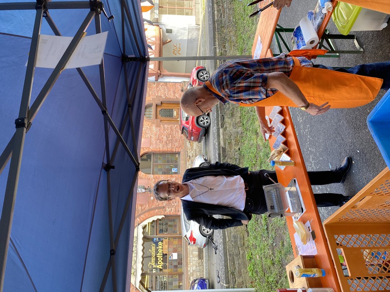 Mehr als 40 Gläubige waren der Einladung gefolgt und erlebten vor der Johanniskirche einen lebendigen und abwechslungsreichen Gottesdienst. Im Anschluss blieb die Gemeinde noch beisammen: Bei Wein und Wasser, serviert aus der Ape von Christian Gerlach, entwickelten sich viele gute Gespräche, die das Miteinander stärkten.