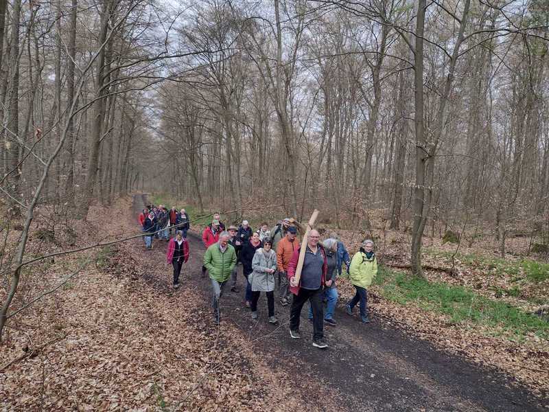 Seit nahezu 40 Jahren gibt es an Karfreitag die „Besinnungswanderung“ bei der Kolpingfamilie Lahnstein, St. Martin. Diesmal ging es vom Parkplatz Spiesborn aus durch den Kur- und Heilwald in Lahnstein auf der Höhe über einen etwa zweistündigen Rundweg, welcher auch an einigen Stellen durch den sogenannten Achtsamkeitspfad und den Herz- und Kreislaufpfad führte. Hella und Helmut Schröder hatten sich als Wanderführer dankenswerter Weise zur Verfügung gestellt. Eine erfreuliche Zahl von 26 Personen, Mitglieder wie auch Nichtmitglieder nahmen den Waldwanderweg unter die Füße. Man konnte den Wald mit allen Sinnen genießen. Das Motto lautete in diesem Jahr „Zerrissen“. An sieben Stationen wurden nachdenkliche Texte von verschiedenen Teilnehmerinnen und Teilnehmern vorgetragen. Immer wieder wurde eine Verbindung zur Leidensgeschichte Jesu versucht. Der Vorsitzende Markus Schild nahm die Begrüßung vor und Vorstandsmitglied Benedikt Hanke verabschiedete die Teilnehmerinnen und Teilnehmer mit dem Wunsch nach schönen Ostertagen. Die Wanderer folgten wieder einem schlichten Holzkreuz, gezimmert aus dem Treibgut des Rheines. Vom kirchlichen Hilfswerk Misereror wurden Segensbändchen als kleines Andenken verteilt. Heike und Matthäus Kohl, die wieder extra aus Flörsheim vom Main angereist waren, hatten auch wieder eine kleine Fotokarte mit Meditationstext für die Teilnehmenden dabei. Zum Abschluss reichten sich alle die Hände und sprachen gemeinsam das Gebet des Herrn, das „Vater unser“. Der Vormittag des stillen Feiertages wurde angemessen und ansprechend begangen in einer schönen Gemeinschaft. Die Teilnehmer staunten über den gut und liebevoll angelegten Kur- und Heilwald mit seinen vielseitigen, ideenreichen Möglichkeiten der Gesunderhaltung. Wahrlich ein kostbares Alleinstellungsmerkmal und Tourismusmagnet für die Stadt am Rhein-Lahn-Eck.