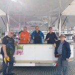 Das Foto zeigt den Assistenten, Leon Bastian, Gewinner Hans Lang und Spielleiter Thomas Schneider. (v.ln.r.)